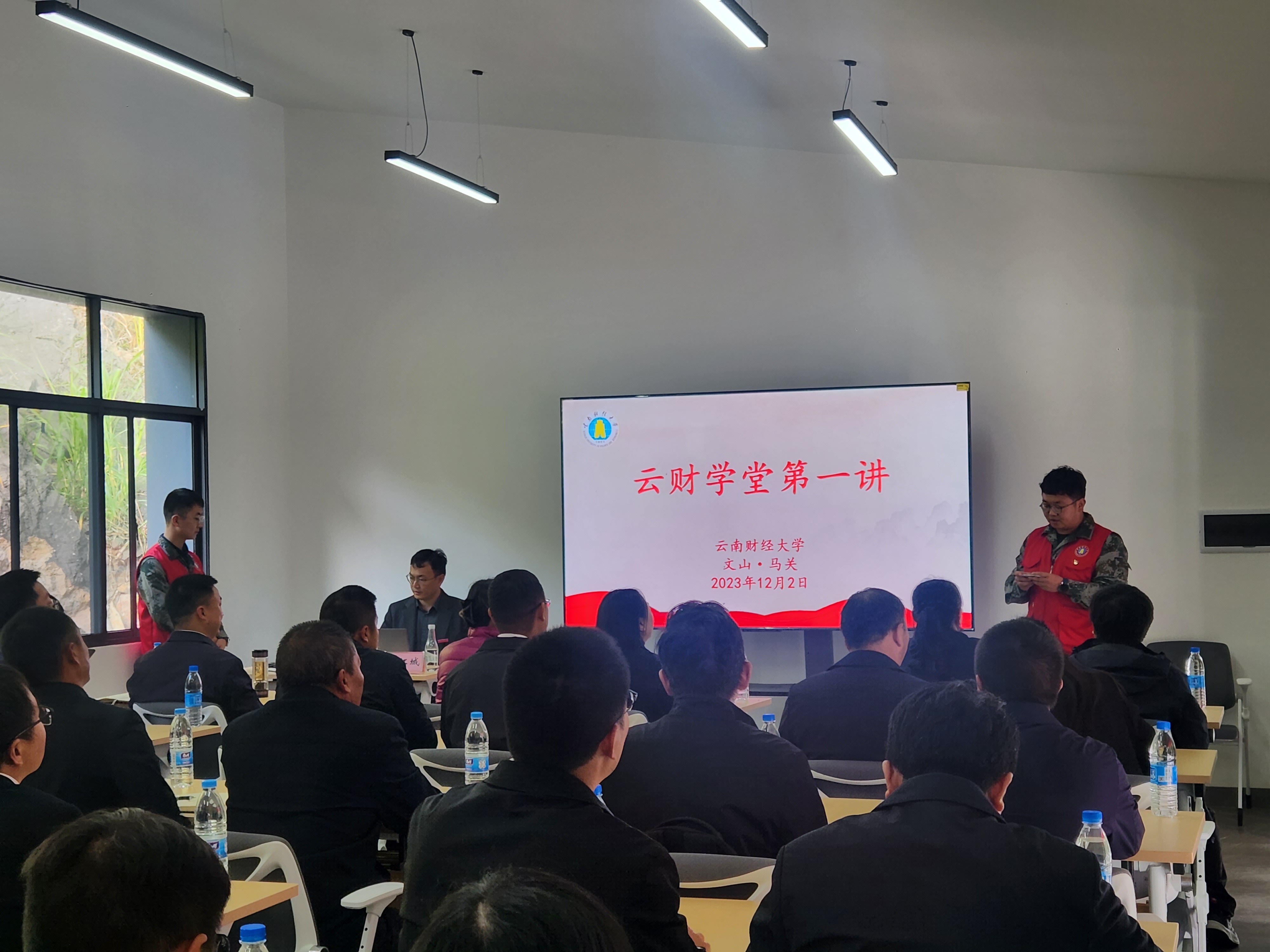 12月2日,由十大买球官方网站和西南交通建设集团股份有限公司共建的云财版科技小院“云财学堂”在马关县坡脚镇马额村正式启用,十大买球官方网站党委书记王建颖,党委副书记陈光瑜,西交集团党委书记、副董事长罗玉红,马关县委副书记、县长郭敏,坡脚镇党委书记杨洪旭聆听了“云财学堂”第一讲。