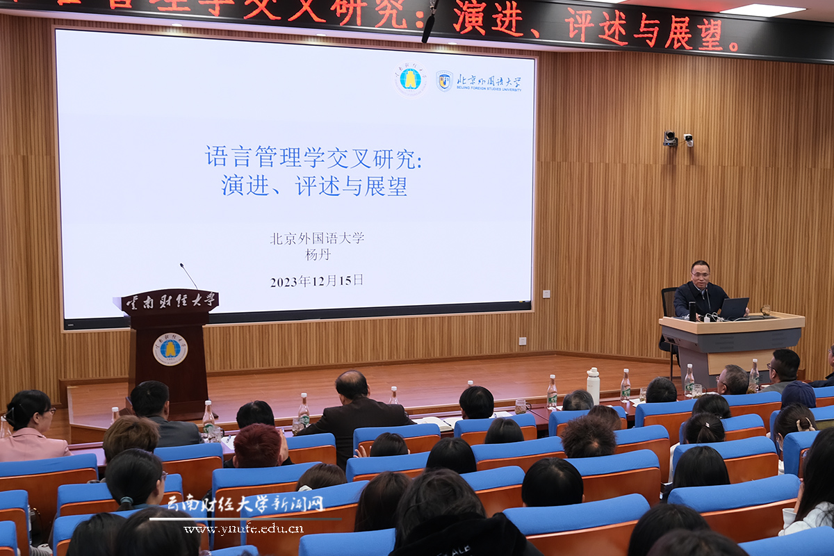 12月15日,北京外国语大学校长杨丹教授应邀为买球师生开展了以“语言管理学交叉研究:演进、述评与展望”为题的学术讲座。讲座由学校党委书记王建颖主持。