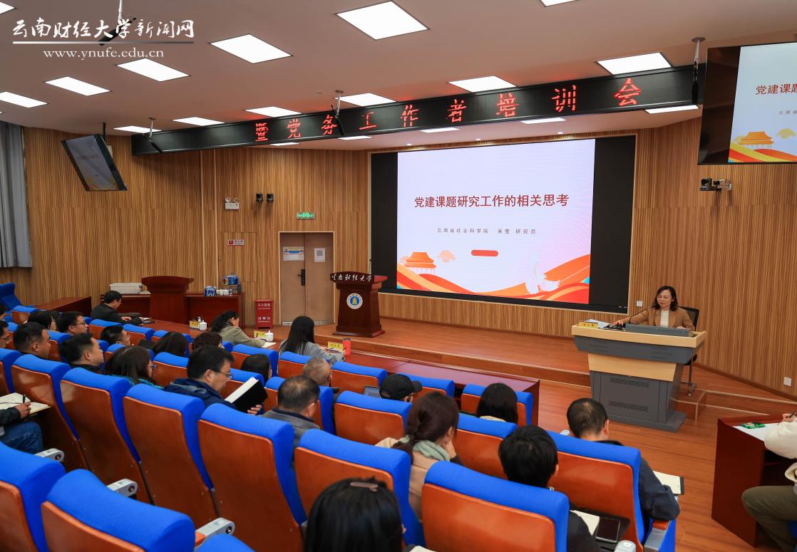 云南省社会科学院马克思主义研究院院长、研究员,省委宣讲团成员,云南省万人计划“文化名家”,全国党建研究会特邀研究员吴莹应邀作党建研究首场专题辅导。学校科学技术处处长兼云南省经济社会大数据研究院院长、教授、博士生导师段云龙作课题申报专题辅导。