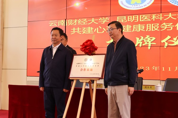 昆明医科大学附属精神卫生中心康复治疗中心主任合浩、中西医结合治疗科副主任胡怡、昆明市心理危机研究与干预中心助理研究员杨婷和实习研究员张艳玲参加揭牌仪式。活动由学生处处长沙磊主持。