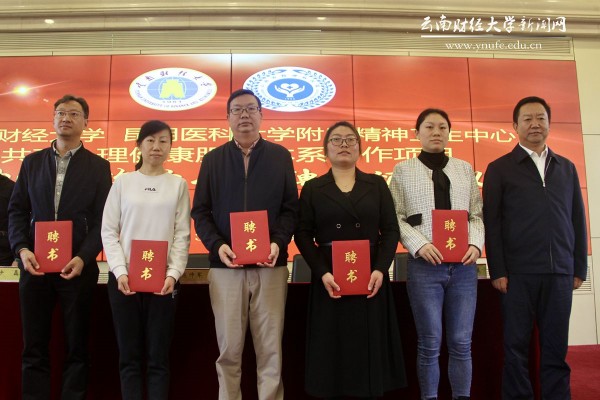 为充分发挥医校合作机制在师生心理健康工作中的重要作用,进一步完善学校心理健康教育与服务体系建设,11月3日上午,十大买球官方网站与昆明医科大学附属精神卫生中心“共建心理健康服务体系合作基地”揭牌仪式在国际学术报告厅举行。校党委副书记施仲军和昆明医科大学附属精神卫生中心副院长高长青代表双方共同为合作基地揭牌,施仲军向到会的5名精神医疗咨询专家颁发了聘书。