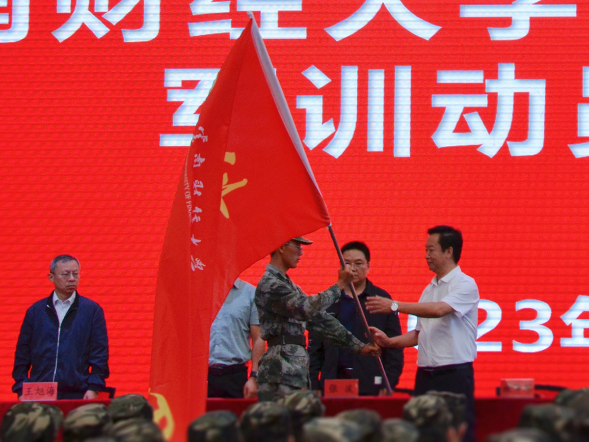 施仲军向军训团授旗并作动员讲话。他向负责承训的安宁市人民武装部和承担军训顾问工作的中国人民解放军31632部队表示欢迎和感谢,向参加本次军训的7900余名同学表示良好祝愿。他表示,今年是全面贯彻落实党的二十大精神的开局之年,大学生军事训练是学校全面贯彻党的教育方针,落实立德树人根本任务,开展国防教育,强化国防意识,培养国防建设高素质后备人才的重要举措。他表示,学校高度重视国防教育及军训工作,通过学生军训、应征入伍、国防后备营建设、军事理论教育等工作,持续激发大学生爱国爱军热情,近年来为部队输送了多批优秀高素质兵源。他希望全体参训同学勇于吃苦、刻苦训练、严守纪律、团结协作、牢记安全,在军训实践中感悟初心使命,在艰苦训练中锤炼吃苦耐劳精神,在服从命令中体会军人职责,在互帮互助中感受团结友谊,在奋力拼搏中蜕变成长;希望全体教官要高标准、严要求,把人民军队的光荣传统和优良作风带到学校,带到同学们中间,为他们大学期间的学习生活和今后投身于祖国建设打下坚实基础;各学院带队教师和军训团工作人员要强化意识,坚守岗位,配合教官做好学生日常管理、思想政治教育、后勤保障等工作,确保2023级学生军训工作圆满完成。