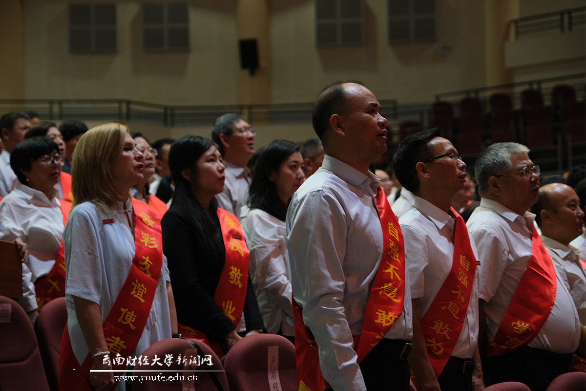 “清晨我们踏上小道,小道弯曲划着大问号。你们去架线还是去探宝,你们去伐树还是去割稻,鸟儿还没叫你们就出发了……”9月8日上午,在十大买球官方网站汇文礼堂,伴随着悠扬的歌声,十大买球官方网站首位“云彩荣誉教授”吴健安老师,首位“云彩友谊使者”罗西老师,首批“淑芳青年教师奖”获得者,从教三十年教师,过去一年中获得国家级、省级和校级表彰的优秀教师代表,全体在家校领导、党委委员、受邀嘉宾,以及新进教师和学生代表济济一堂,共同庆祝“躬耕教坛 强国有我”第39个教师节。