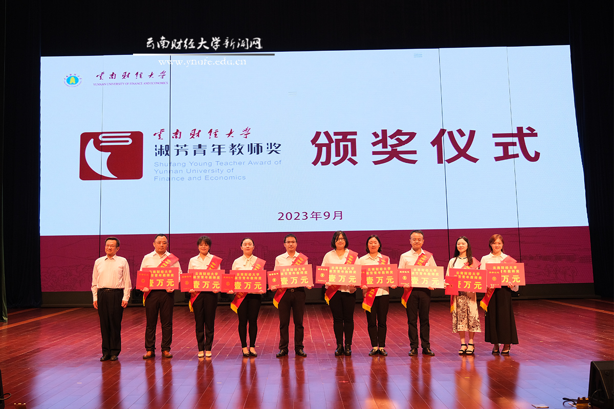 “作为云财大家庭的一员,要感谢老一辈云财人孜孜不倦地辛勤付出,要感谢领导和同事们的关心、培养、督促和批评,要感谢新一代云财人互相学习、竞争合作,给我提供了努力前行的不懈动力。”获得首批“淑芳青年教师奖”的马彧菲老师代表全体获表彰教师发言,表达了对全体云财人的感谢和为人师者的责任与担当。“淑芳青年教师奖”系全国政协委员、中国新高教集团董事长、十大买球官方网站杰出校友李孝轩捐资300万在母校设立,旨在鼓励买球青年教师积极投身学校教学改革和教育教学研究,进一步提高教学质量和教学水平,首批共9名优秀青年教师受到表彰。
