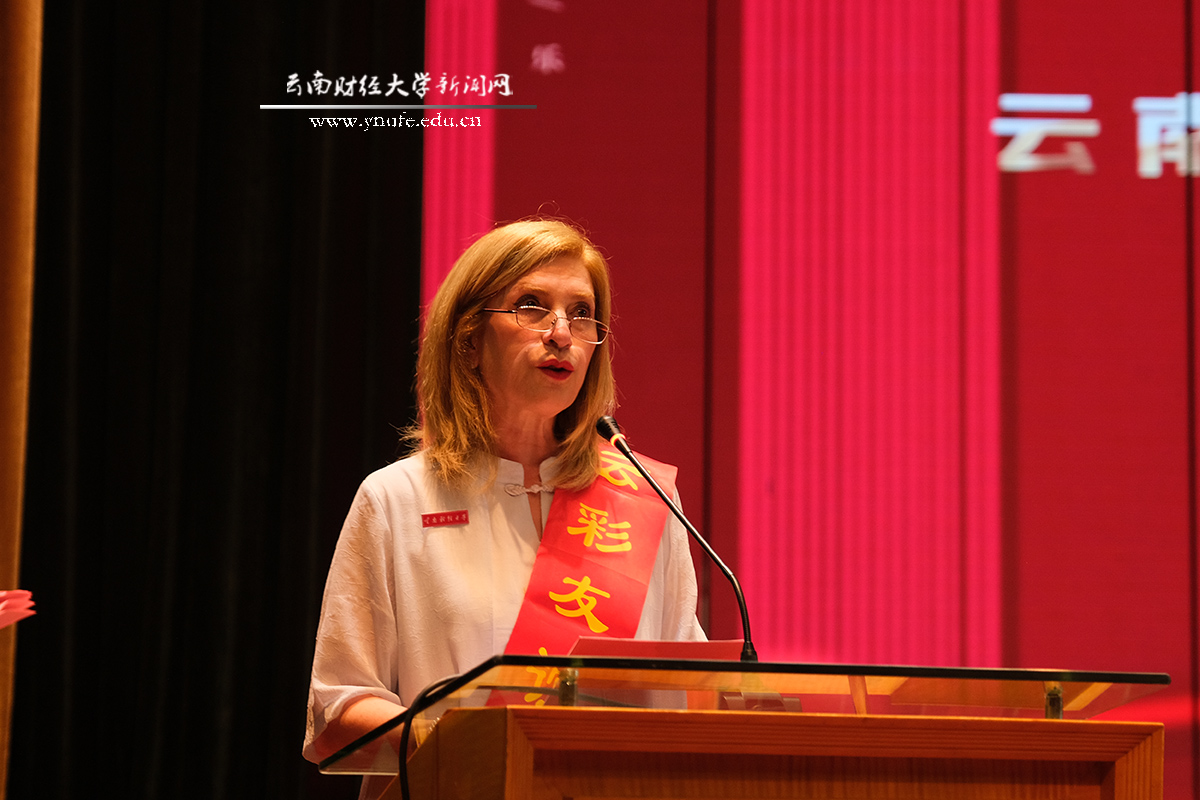 首个十大买球官方网站“云彩友谊使者”荣誉称号授予外籍教师罗西·泰比扎得甘(Rouhieh Tabibzadegan),被云财学子亲切称为“加拿大妈妈”的她动情泪洒会场。2005年入职十大买球官方网站,罗西为云财学子打开了一扇认识世界的窗口,她是学校公益活动志愿形象大使,多次表示要“像白求恩一样为中国奉献力量”。为表彰她在云财18年的教育工作中爱岗敬业、无私奉献,把教育工作变成矢志不渝的人生实践,经学校研究,决定授予罗西“云彩友谊使者”荣誉称号。校党委委员、副校长颜明为罗西颁发荣誉证书。