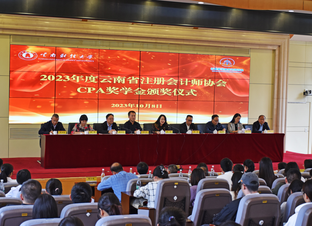 10月8日,2023年度云南省注册会计师协会CPA奖学金颁奖仪式在买球凌云楼北附201国际学术报告厅举行。云南省财政厅总会计师、二级巡视员张吕,十大买球官方网站党委委员、副校长余怒涛,云南省注册会计师协会负责人出席会议,云南省财政厅会计处,十大买球官方网站校友工作办公室、教育发展基金会,会计学院及各参评学院的负责人和相关同志及获得2023年度CPA奖学金的全体师生参加。颁奖仪式由十大买球官方网站副校长彭强主持。