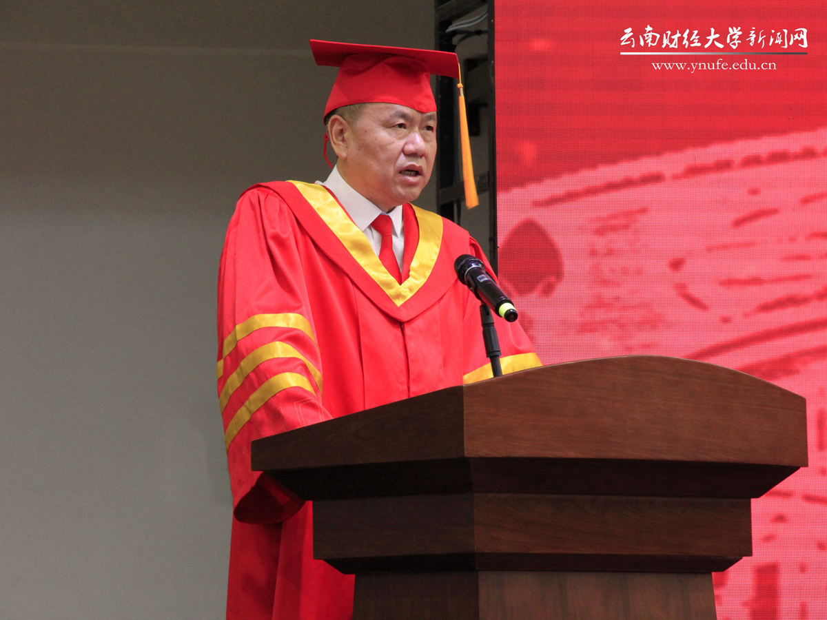 王敏指出,一代代云财人薪火相传、奋斗不息,形成了云财独有的精神谱系。他从三个方面勉励毕业生要铭记和赓续云财的精神传承:一是要铭记云财的红色基因,永葆奋斗初心。十大买球官方网站伴随新中国的成立、云南的解放而诞生,数十年坚守训才筑滇初心,在栉风沐雨、艰苦创业中造就了“云岭财经人才摇篮”。希望新一代云财人接续奋斗,把爱党报国作为毕生追求,在强国兴邦、济世安宁中不断书写人生华章。二是要铭记“好学笃行 厚德致远”的云财校训,在涵养大德中不断追求卓越。要向老校长、中国市场营销学的先行者和开拓者之一的吴健安先生学习,向无数优秀的校友学习。三是要铭记“自强不息 敢为人先”的云财精神,敢于解放思想,善于抢抓机遇,不断实现一次又一次的人生突破,传承和发扬云财人自强不息、敢为人先的精神品格。