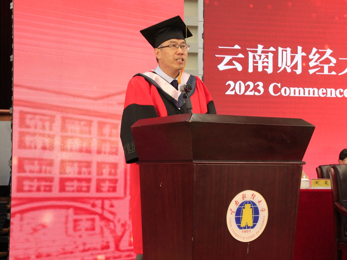 “今天是同学们值得铭记一生的日子,你们顺利获得了学位,即将开启人生新的篇章,踏上新的征程。回望在云财的求学岁月,同学们积累了知识、收获了成长,云财有幸见证了你们人生中最富朝气的年华。”王敏在致辞中回顾了过去四年2023届毕业生与学校共同成长的难忘历程,认为同学们在过去几年与学校同心同力应对各种挑战,克服了种种困难,在考验中获得了成长,未来也将把学校的影响传遍万水千山。
