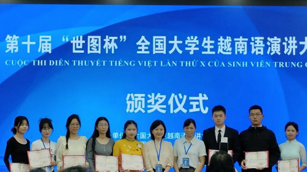 5月12-14日,第十届“世图杯”全国大学生越南语演讲大赛暨越南语教学研讨会在广西大学举行。买球国际语言文化学院由岳淑芳老师带队组成的4名越南语专业的学生与来自北京外国语大学、广东外语外贸大学、广西大学等全国25所高校的104名选手同场竞技,分别获得1个一等奖、1个二等奖、1个三等奖和1个优秀奖,取得买球参与该项赛事以来最佳成绩。