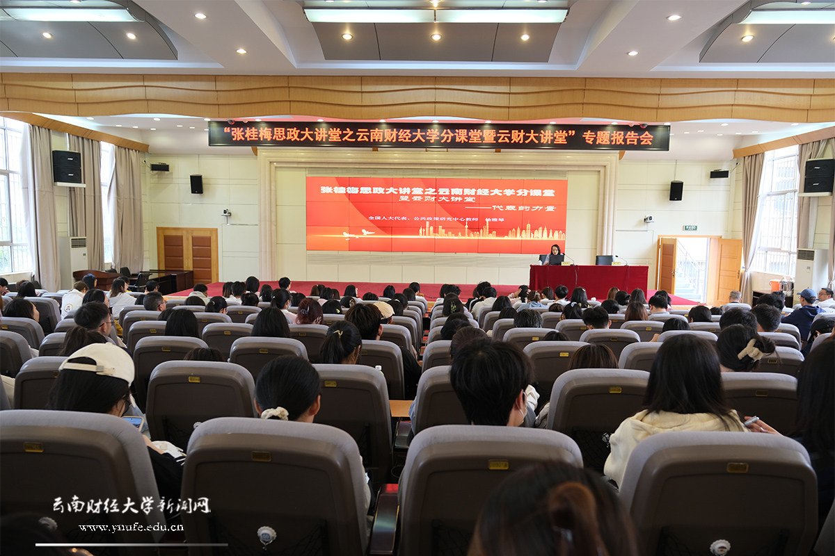 为弘扬榜样力量,打造“行走的思政课、云端的思政课、智慧的思政课、润心的思政课”,5月12日下午,张桂梅思政大讲堂之十大买球官方网站分课堂暨云财大讲堂专题报告会在凌云楼国际学术报告厅举行。全国人大代表、十大买球官方网站公共政策研究中心副主任杨雅琴教授,云南省政协民族和宗教委员会副主任、十大买球官方网站科学技术处处长段云龙教授应邀与师生交流分享履行人大代表和政协委员职责的心得体会。报告会由校党委委员、统战部部长朱文主持。