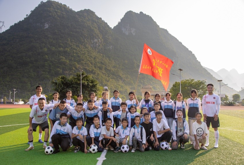 捐赠仪式结束,云南潮装记工程项目管理有限公司邀请的专业教练为山车中心学校学生上了一堂生动的足球训练体验课。