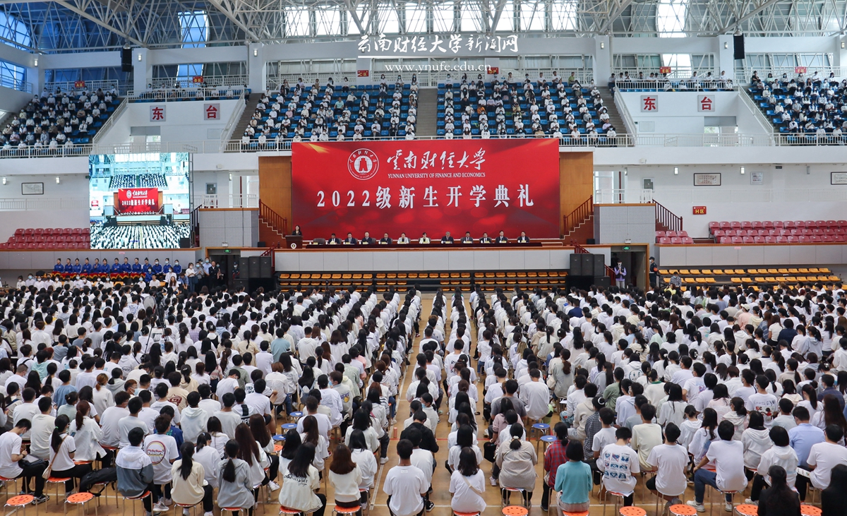 10月7日,十大买球官方网站2022级新生开学典礼分别在龙泉路校区南院体育馆和安宁校区训练馆举行,来自全国31个省(市、自治区)的8500名本科生、1615名硕士研究生和46名博士研究生以线下和线上同步的方式参加了开学典礼。