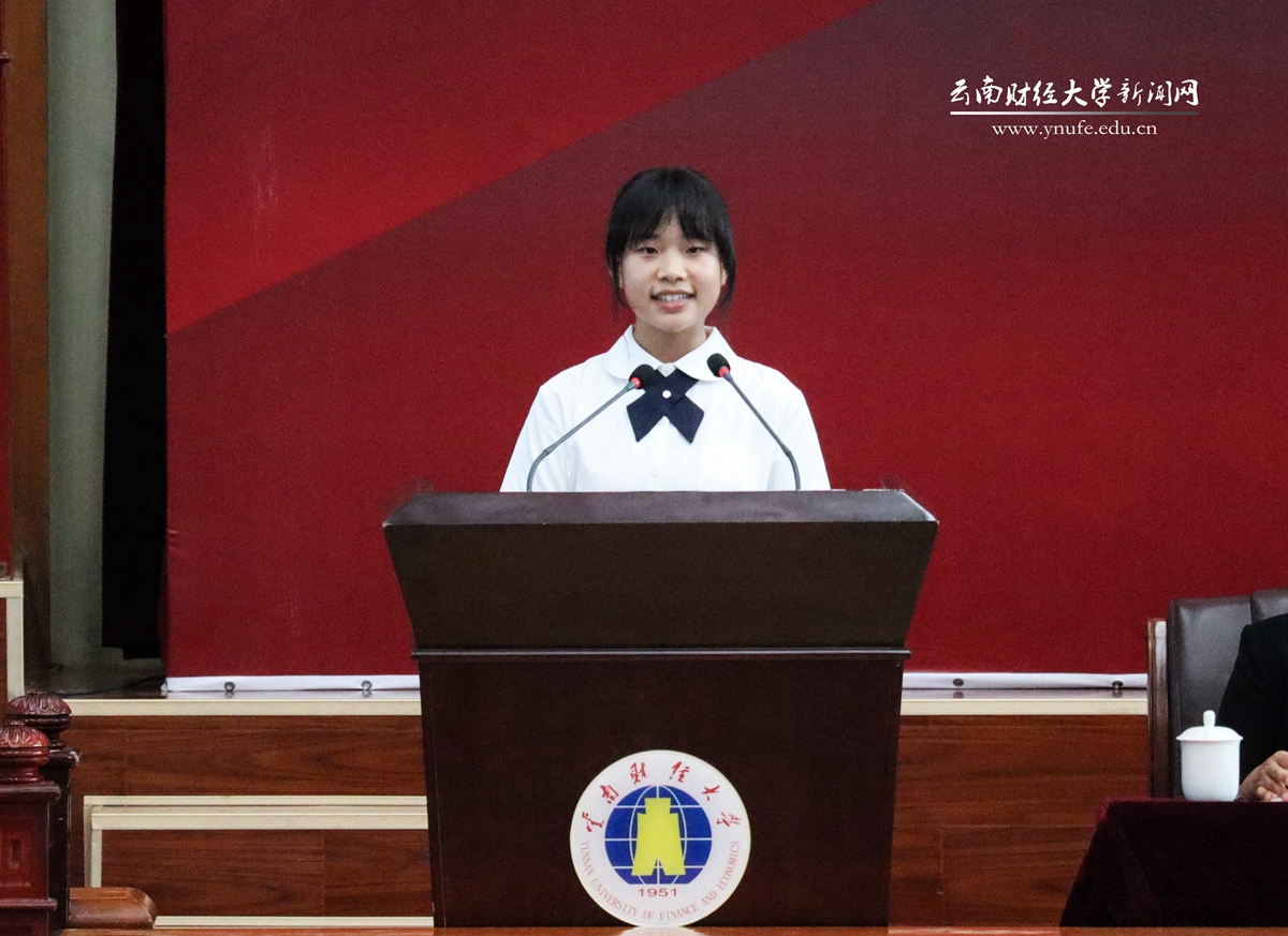 “我们是新生,是追梦者,是圆梦人,更是骄傲的云财人。”传媒与设计艺术学院2022级沈子嫣作为研究生新生代表发言。她表示,迈入人生的新阶段,同学们将用掷地有声的青春岁月,去完成一篇倾注感情的故事,在以后更为激烈的竞争中乘风破浪,展现属于自己的风采,续写云财大的辉煌。