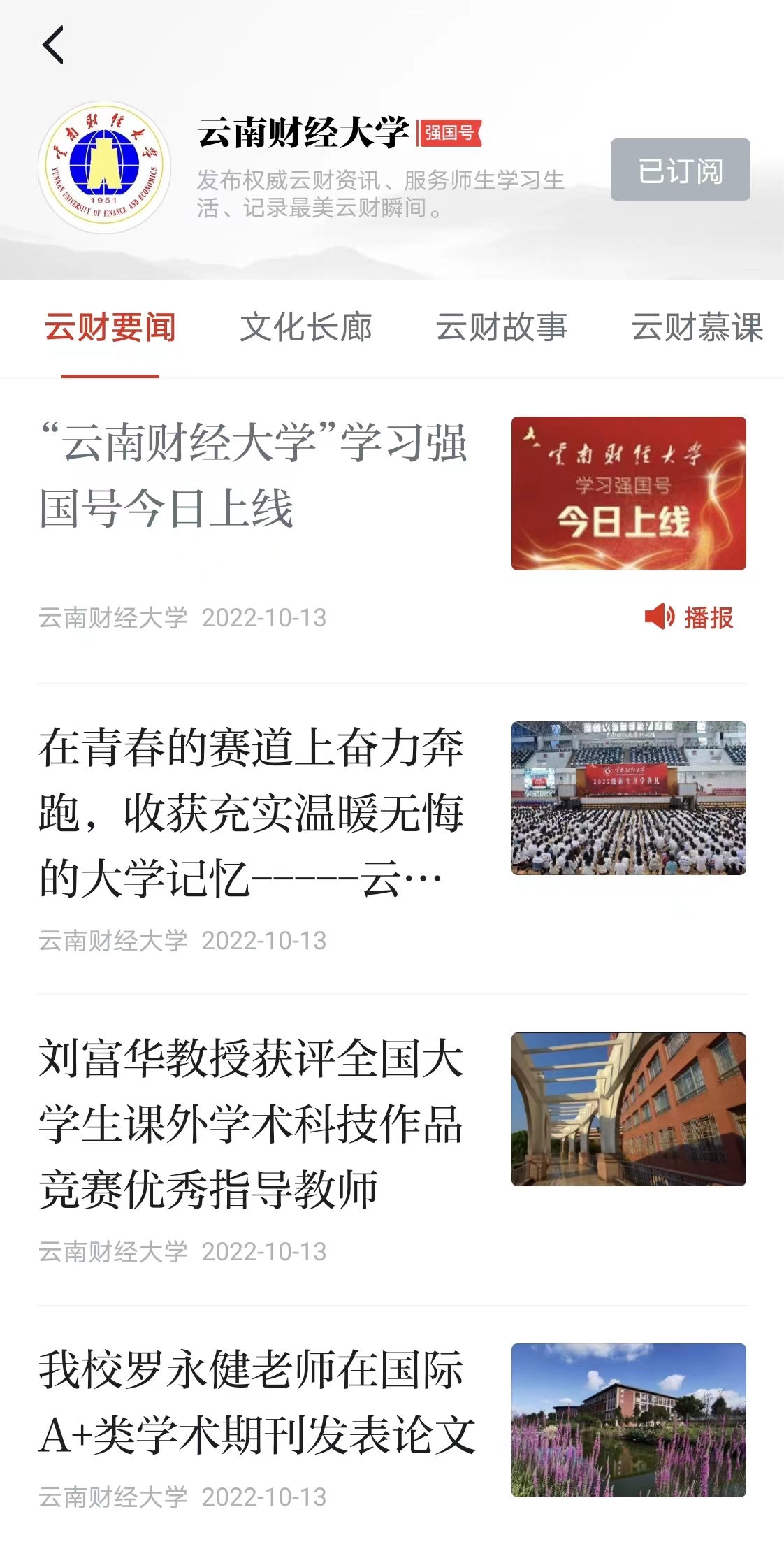 2022年6月,买球在全省高校中首家向“学习强国”学习平台申请建设学习强国号并顺利通过审核,获批创建“十大买球官方网站”学习强国号。历时4个月的准备,“十大买球官方网站”学习强国号平台的栏目搭建和内容准备就绪,于10月13日早上10:00正式上线,成为全省高校中首家上线的高校学习强国号。依托学校现有的媒体平台资源,即将正式上线运行的“十大买球官方网站”学习强国号设置有“云财要闻”“云财故事”“文化长廊”和“云财慕课”四个栏目,全面宣传和展示学校以习近平新时代中国特色社会主义思想为指导铸魂育人,教育引导学生厚植爱国主义情怀,立志听党话、跟党走的生动实践,展示学校在人才培养、科学研究、社会服务、对外合作与交流、校园文化建设等方面取得的显著成绩和工作动态。