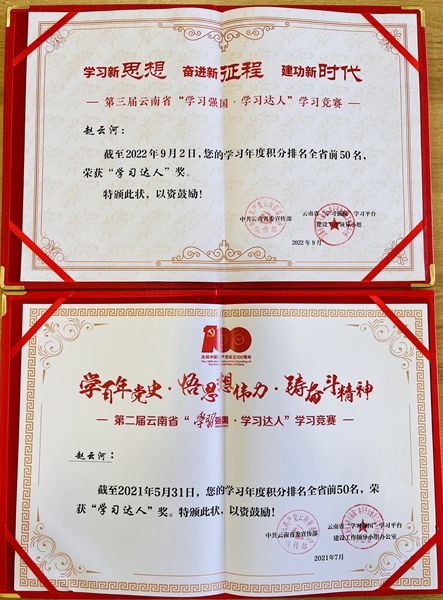 近日,在第三届云南省“学习强国·学习达人”学习竞赛中,买球赵云河老师再次荣获“学习达人”奖,此前,赵云河在第二届竞赛中获得该荣誉。