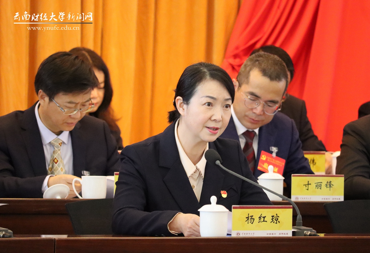大会号召,办一所让党放心、人民满意、社会认可的大学,是云财人历经七十余载风雨洗礼永不褪色的初心;办一所更有格局、更有情怀、更有作为的大学,是云财人站在复兴强国征程上的光荣使命。让我们更加紧密地团结在以习近平同志为核心的党中央周围,坚定不移沿着习近平总书记指引的方向阔步前进,踔厉奋发、勇毅前行,担当新使命、奋进新征程,全面开启高水平财经大学建设新篇章,为全面建设社会主义现代化强国、谱写好中华民族伟大复兴中国梦的云南篇章而团结奋斗!