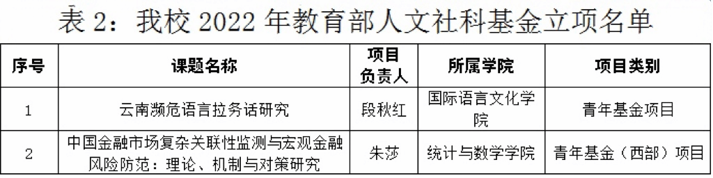 近日,全国哲学社会科学办公室、教育部社科司下达了2022年国家社科基金、教育部人文社科基金立项名单,买球共获10项课题立项资助。其中,国家社科基金立项8项 (一般项目2项、西部项目6项),资助经费160万元;教育部人文社科基金立项2项。在此,向获得立项的老师表示衷心祝贺,希望全校老师再接再厉,在2023年各类课题申报中再创佳绩。具体名单如下:
