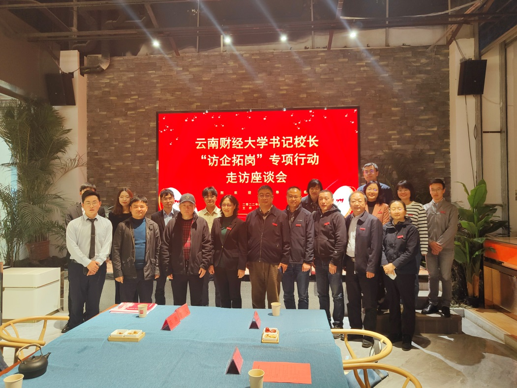 云南三耳科技有限公司总经理聂炜,云南省物流投资集团有限公司党委书记、董事长彭伟、总经理苏亚涛,云南康辉旅游集团、王府礼遇集团董事长刘江,王府礼遇(云南)传媒发展有限公司总经理邵天钟,昆明南亚东南亚进口商品商贸有限公司总经理刘先文等企业负责人及部分校友代表参与座谈交流。学校教务处处长王智勇,招生与职业发展中心主任霍嘉军,物流学院党委书记赵玮、院长张强,经济学院党委书记、常务副院长陈永飞等相关部门及学院负责人、教师代表参加走访。