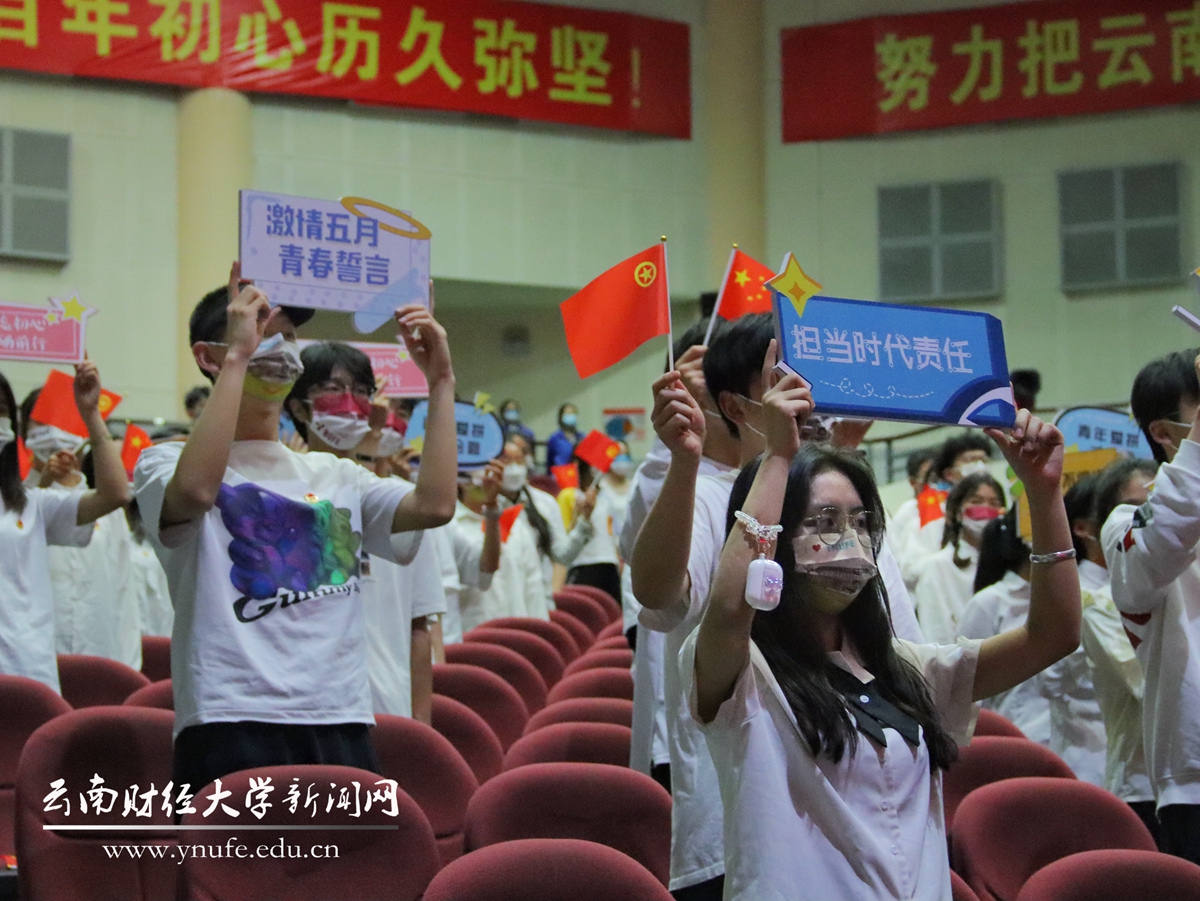 表彰大会在云财青年齐颂《青年永远跟党走》的誓言中结束,“我们是祖国的希望,我们是中华的栋梁,青年的心愿凝聚成擂鼓之力,演奏出最壮烈的中国进行曲,青年永远跟党走。”激荡的誓言久久回荡在校园中。