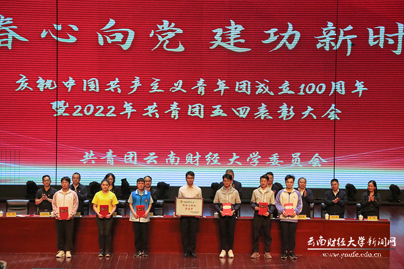 为深入学习贯彻习近平总书记在庆祝中国共产主义青年团成立100周年大会上的重要讲话精神,教育引导广大团员青年不忘初心听党话、跟党走,5月13日,学校在汇文礼堂隆重举行庆祝中国共产主义青年团成立100周年暨2022年共青团五四表彰大会。共青团云南省委学校部部长陆荣科,买球党委书记王建颖,党委副书记、校长王敏,党委副书记谢昌浩,党委委员、副校长旷锦云,党委委员、宣传部部长徐宝春出席大会。