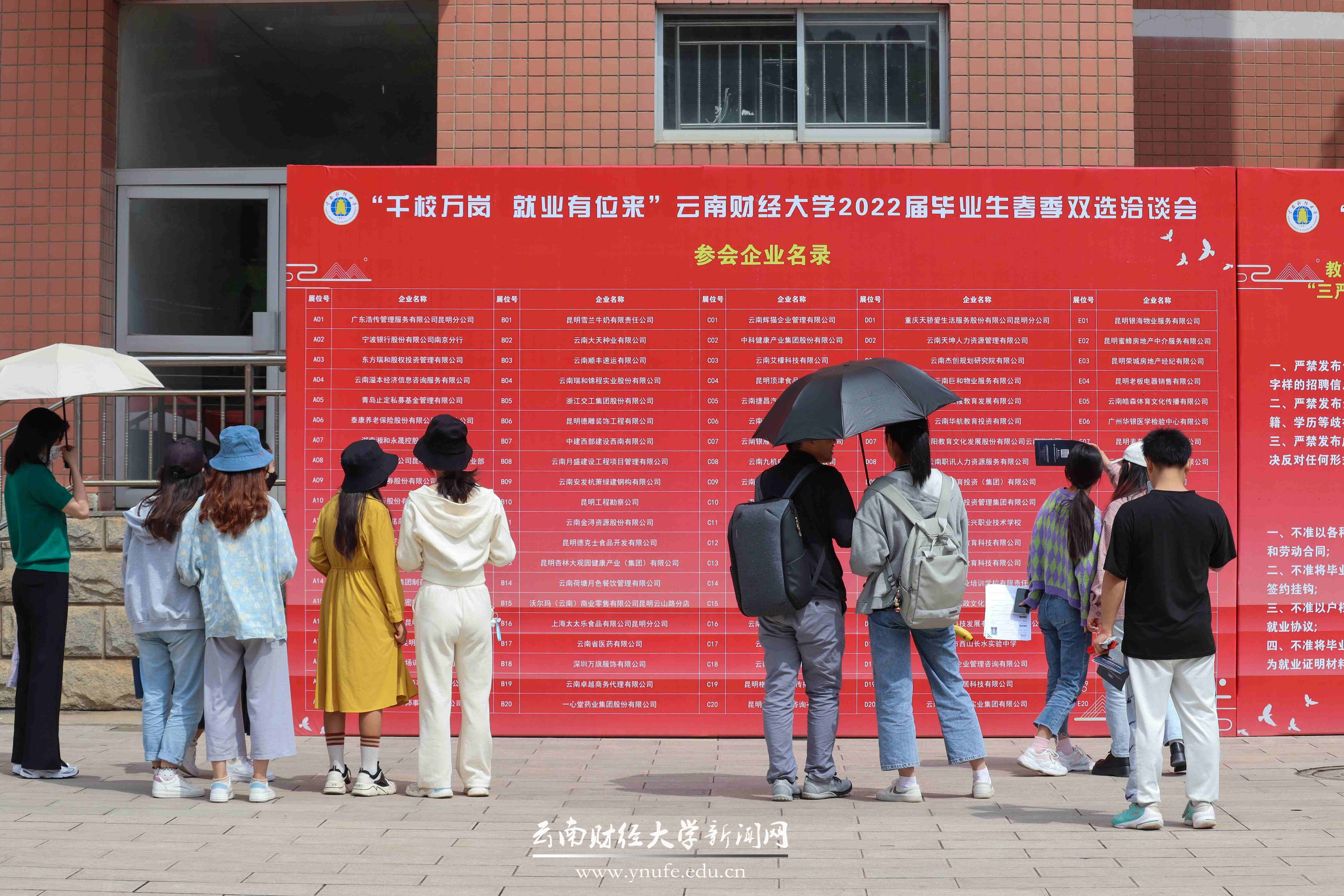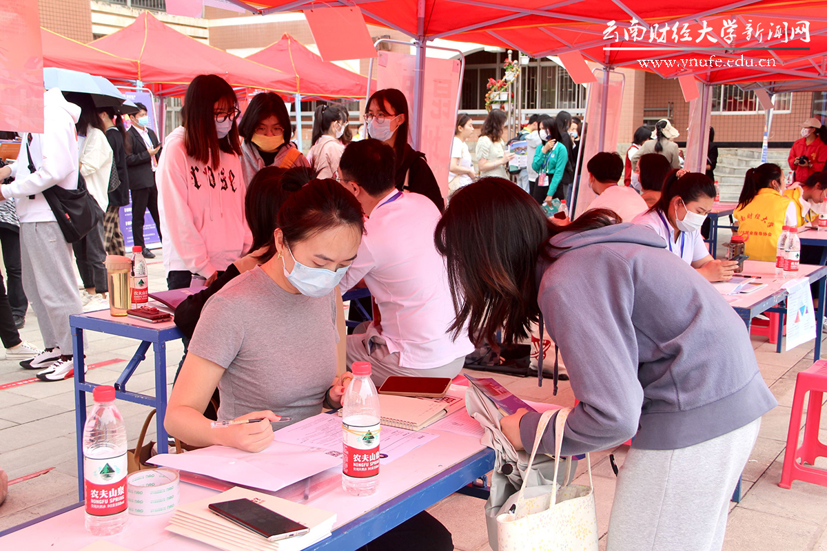 5月20日下午,十大买球官方网站就业“百日冲刺”专项行动“千校万岗 就业有位来”2022届毕业生春季双选洽谈会在龙泉路校区南院新阳广场举行。