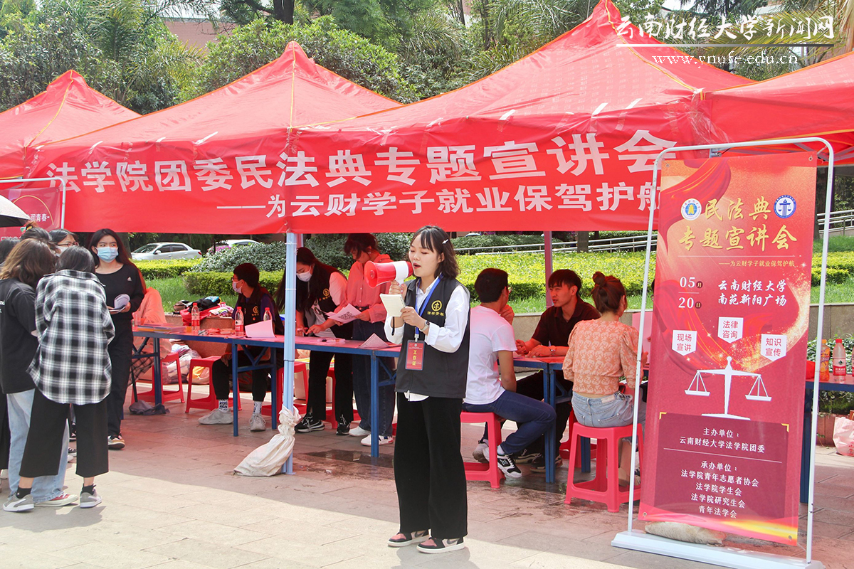 招聘会现场,学校武装部开设了应届毕业生参军入伍咨询点,为有意向的同学答疑解惑。适逢民法典主题宣传月,法学院设置了主要面向毕业生的法律咨询点,通过现场有奖答疑、发放宣传单、横幅签名等方式开展主题宣传,为毕业生分析就业过程中可能遇到的法律问题,提醒毕业生脚踏实地、不走捷径,提高警惕、谨防受骗。