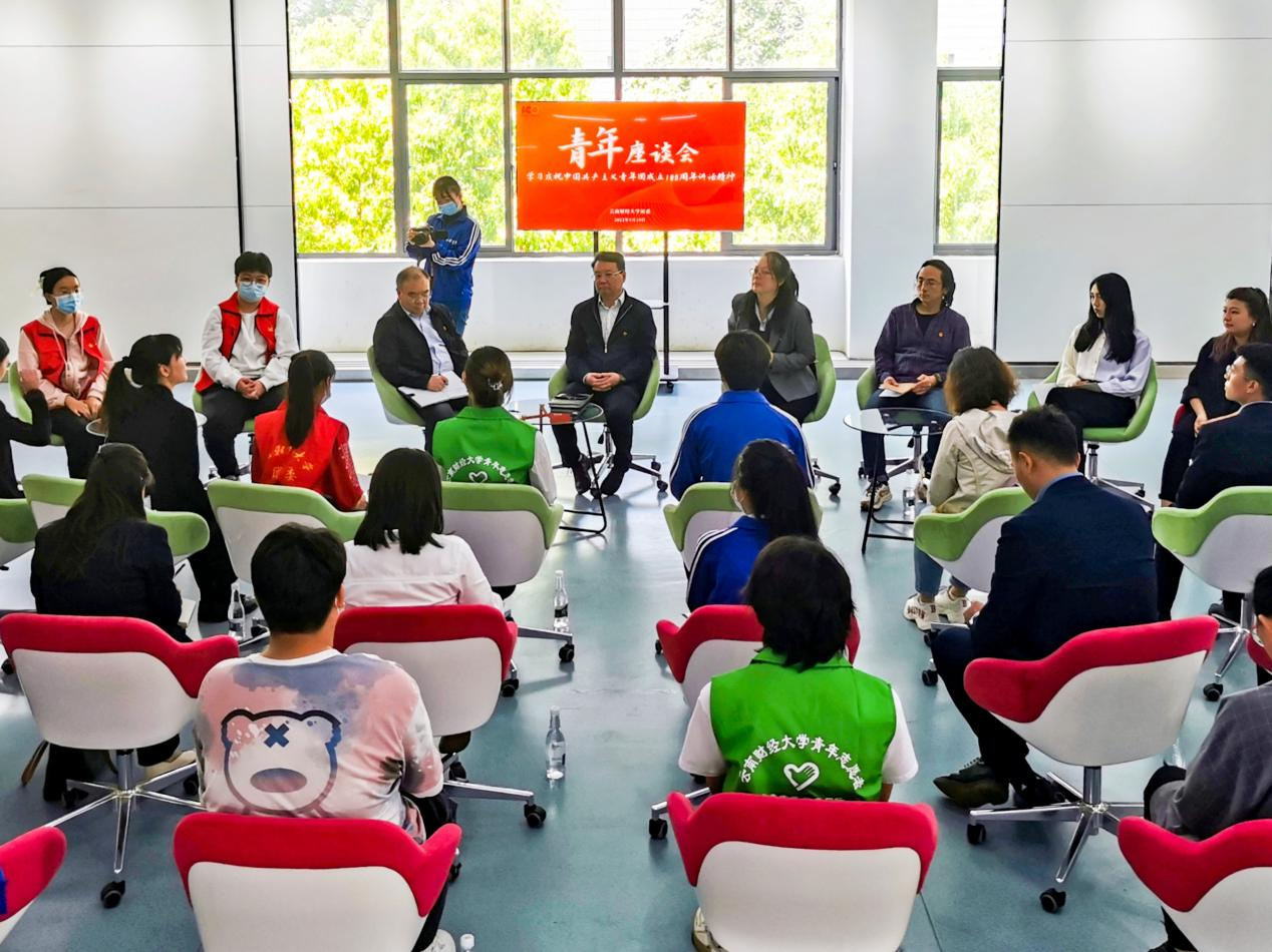 观看结束后,师生代表、全体团委委员在学校青年交流中心参加青年座谈会,畅谈心得体会。