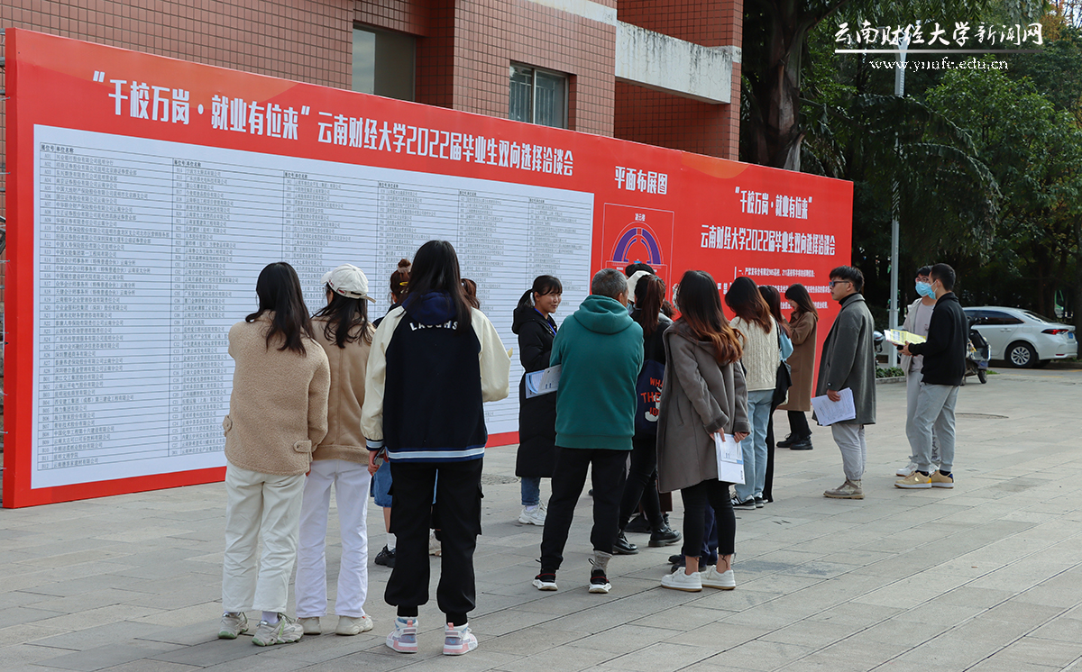 11月30日下午,由共青团云南省委和买球共同举办的“千校万岗 就业有位来”十大买球官方网站2022届毕业生双向选择洽谈会在龙泉路校区南院新阳广场举行。