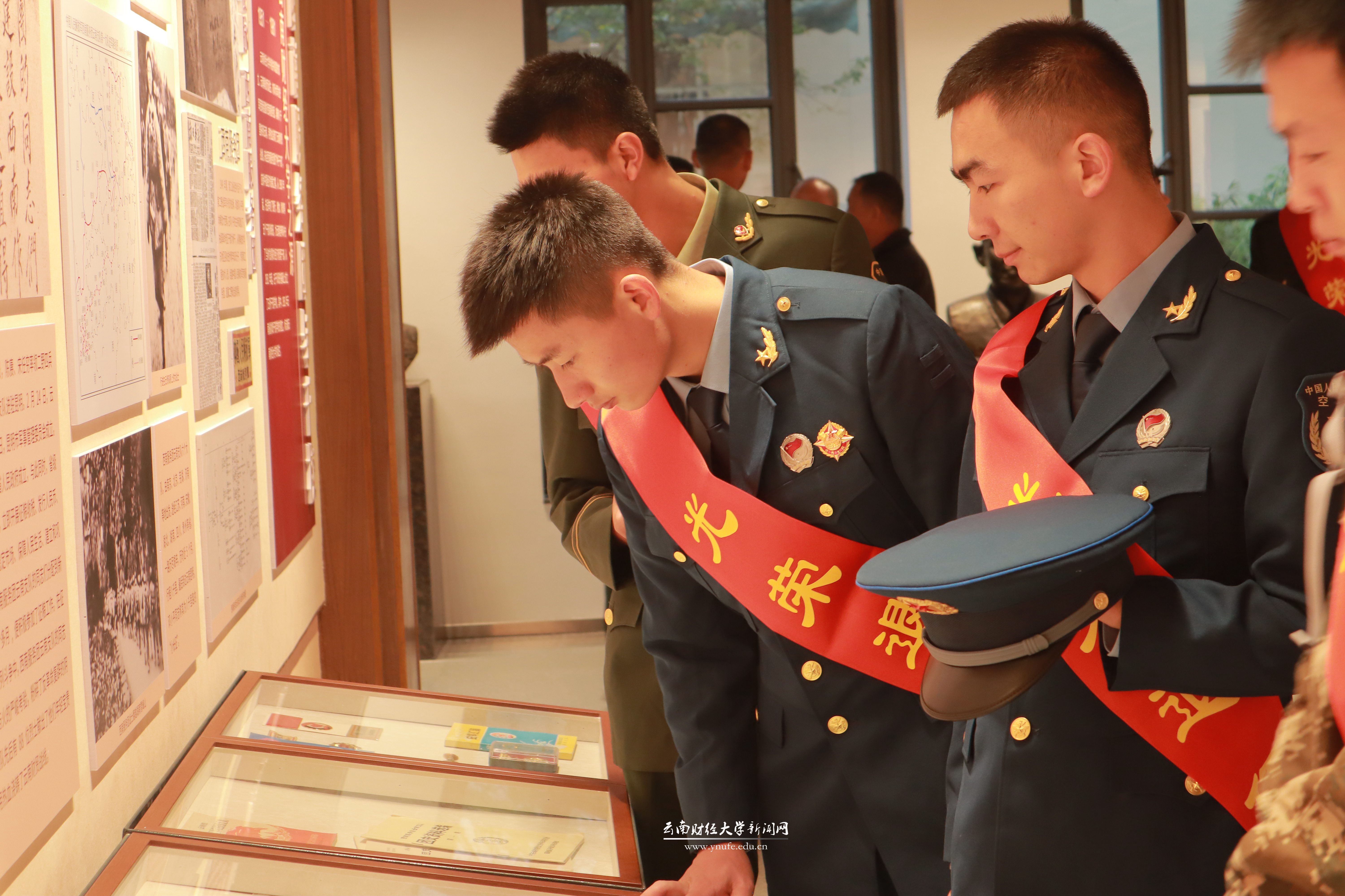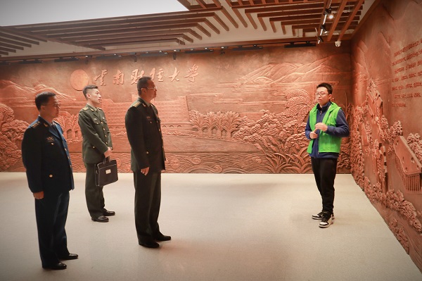 会后,李宁明、邓坤、任鹏飞和退伍学生一同参观了校史馆。