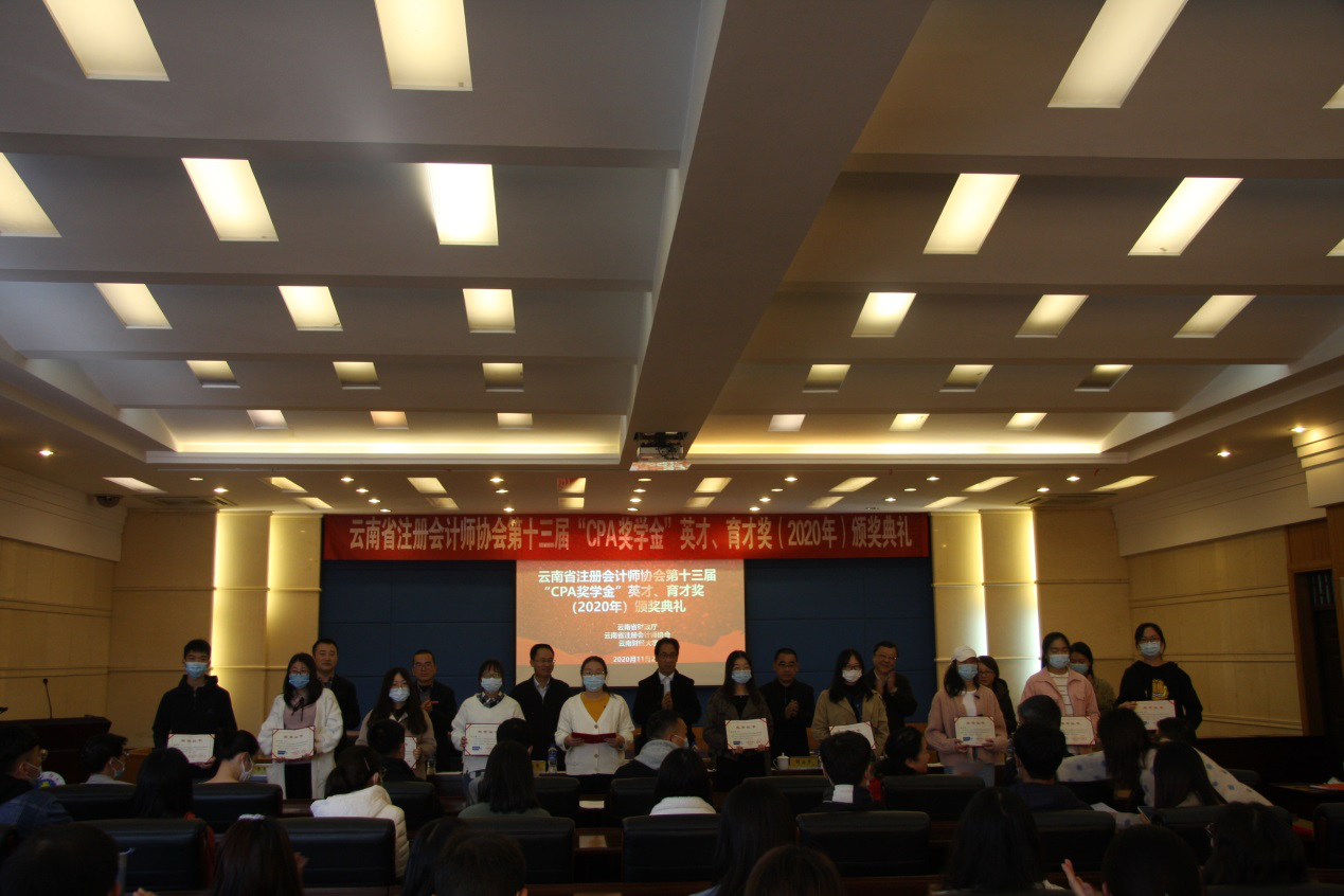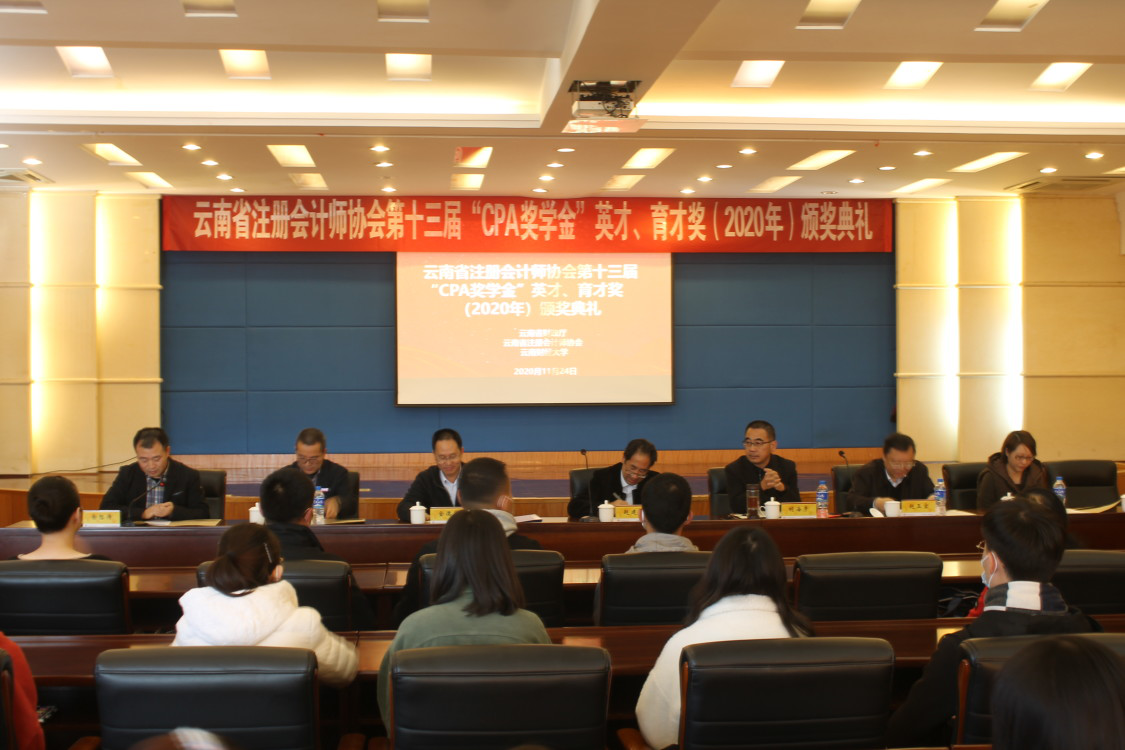 11月24日,由云南省财政厅、省注册会计师协会、学生处和会计学院联合举办的2020年第十三届"CPA奖学金"英才、育才奖颁奖典礼在致远楼415举行。云南省财政厅总会计师赵建森,买球副校长胡海彦,省注册会计师协会、资产评估协会秘书长金德华等颁奖嘉宾和各学院116名“CPA英才奖”获奖学生以及会计学院10名“CPA育才奖”获奖教师代表参加颁奖典礼。颁奖典礼由会计学院院长余怒涛主持。