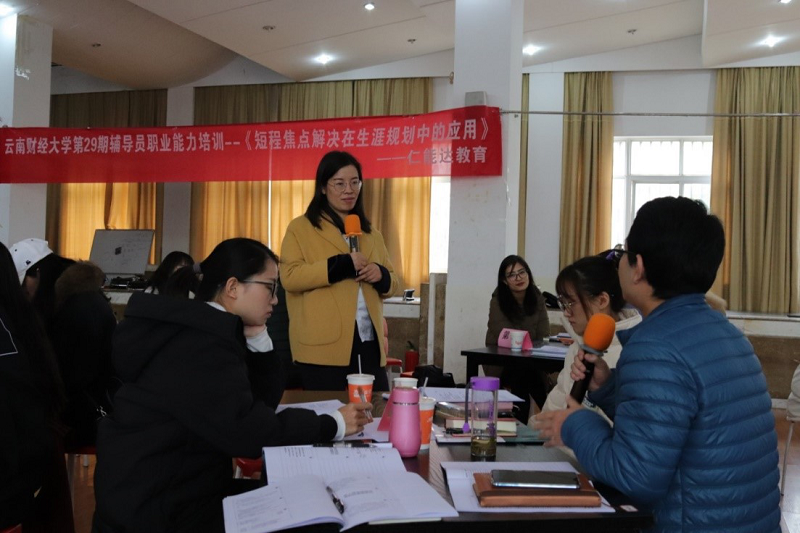 12月2日至4日,买球第29期辅导员职业能力培训在南院秋实楼学生服务大厅举行,本次培训的主题是“短程焦点解决在生涯规划中的应用”。
