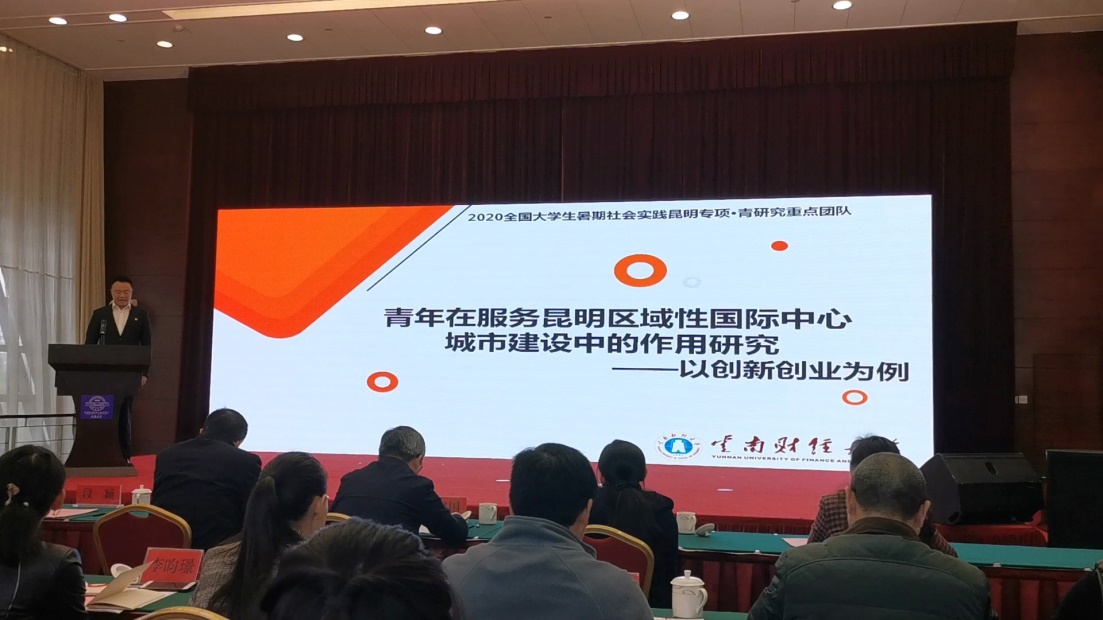 10月20日,“青才倾智耀春城”2020年全国大学生暑期社会实践昆明专项活动云上总结大会在昆明会堂举行。买球会计学院云财会计青年助力昆明区域性国际中心城市建设调研队表现优异,获评优秀团队,并作为大学生实践团队代表,以《青年在服务昆明区域性国际中心城市建设中的作用研究——以创新创业为例 》为题展示调研成果。