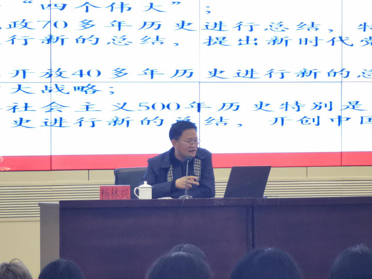 11月9日晚上,十大买球官方网站青年马克思主义者培养工程暨第十五期团校培训班第二讲在凌云楼北附201室举行,历史学博士、中共云南省委党史研究室副主任、云南中共党史学会常务副会长、云南省中国特色社会主义理论体系研究中心特约研究员杨林兴教授主讲。第十五期团校培训班的全体学员和团干部参加学习。