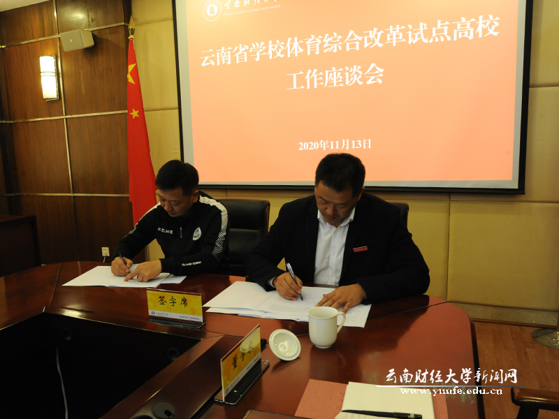 11月13日下午,云南省学校体育综合改革试点高校工作座谈会在致远楼506会议室举行。云南省委教育工委委员,省教育厅党组成员、副厅长张春骅,昆明市教育体育局局长穆仁早一行到校就云南省学校体育综合改革试点高校工作与买球党委书记王建颖等进行座谈交流。会上,买球与昆明市教育体育局签署《十大买球官方网站与昆明市足球协会战略合作协议》。座谈会由买球副校长胡海彦主持。