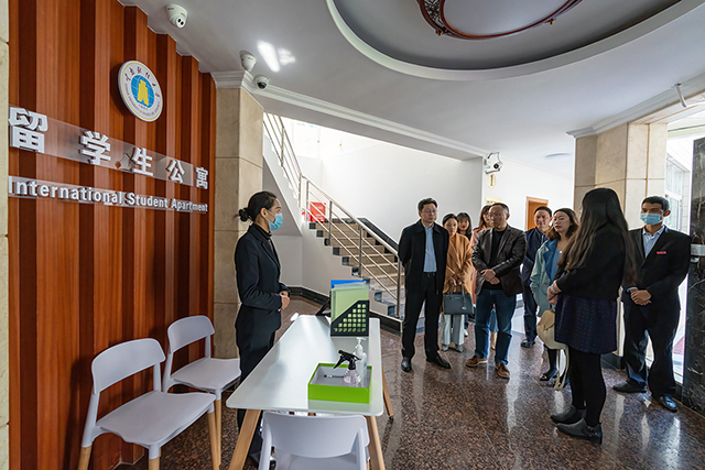 巡查组听取了买球正在老挝建设的VR教学中心项目情况,参观了留学生公寓。