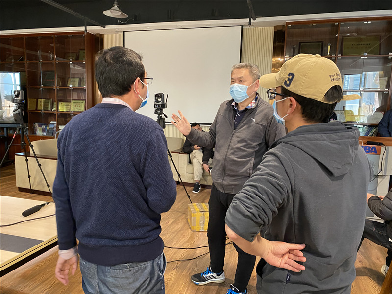 统计与数学学院副院长陈飞老师、信息学院李怡佳老师现场进行了线上教学直播平台的测试与直播演示。