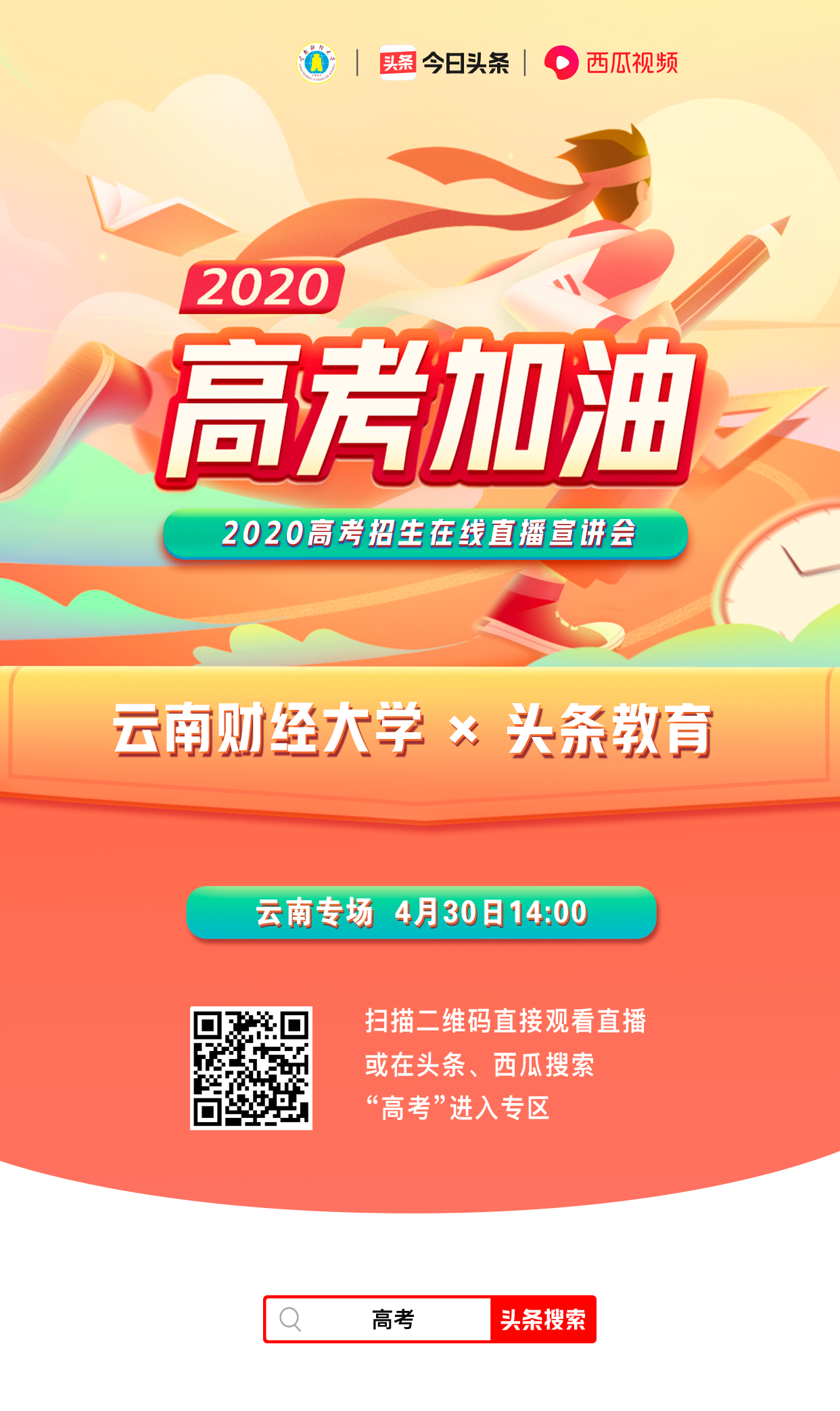 早在春节期间,“十大买球官方网站本科招生办公室”微信公众号、本科招生网、考生QQ联络群就已开始运行,并实时更新信息,及时回应广大考生和家长的关切。为了能够更好地为广大考生和家长服务,4月30日14:00,学校将联合“今日头条”“西瓜视频”推出第一期2020十大买球官方网站高考招生在线直播宣讲会,进行在线答疑。
