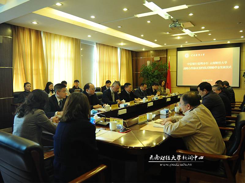 1月3日上午,买球与中信银行昆明分行战略合作协议签约仪式在致远楼506举行,中信银行昆明分行行长芮昌永和买球校长伏润民分别代表战略合作双方签署协议。中信银行昆明分行副行长冯森林、行长助理董舸征,买球副校长胡海彦出席签约仪式,仪式由党委副书记桂正华主持。
