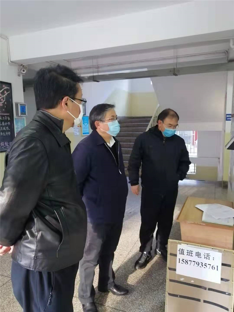 2月11日上午,校长伏润民、党委副书记谢昌浩走访学校北院学生公寓、门岗以及高校小区等地,检查落实疫情防控有关工作。