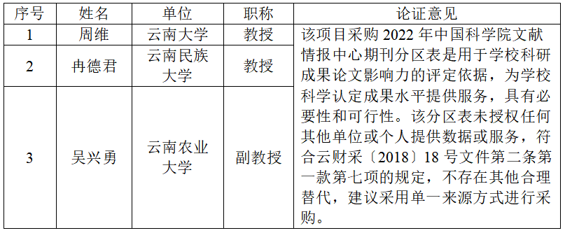 中科院期刊分区表是我国高校评价国际学术期刊影响力的主要标准,是买球评定外文论文成果的重要参考依据。为此,需订购最新版本中科院期刊分区表,向全校师生开放查询。由于“2022年中国科学院文献情报中心期刊分区表”项目符合云财采〔2018〕18号文件第二条第一款第七项“只能由特定供应商制造或者提供货物和服务,且不存在任何其他合理的选择或替代情况的其他情况”的规定情形,故拟采用“单一来源采购”方式进行采购。
