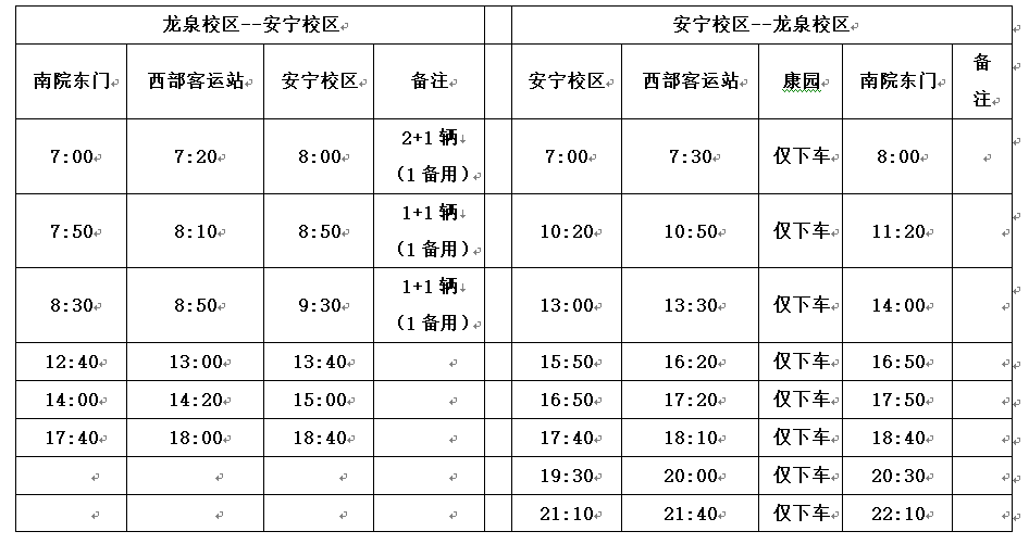 学校2023年中秋节、国庆节放假期间教师交通车运行班次安排如下: