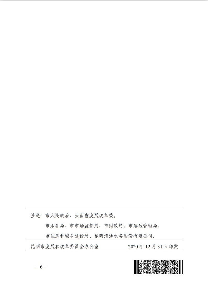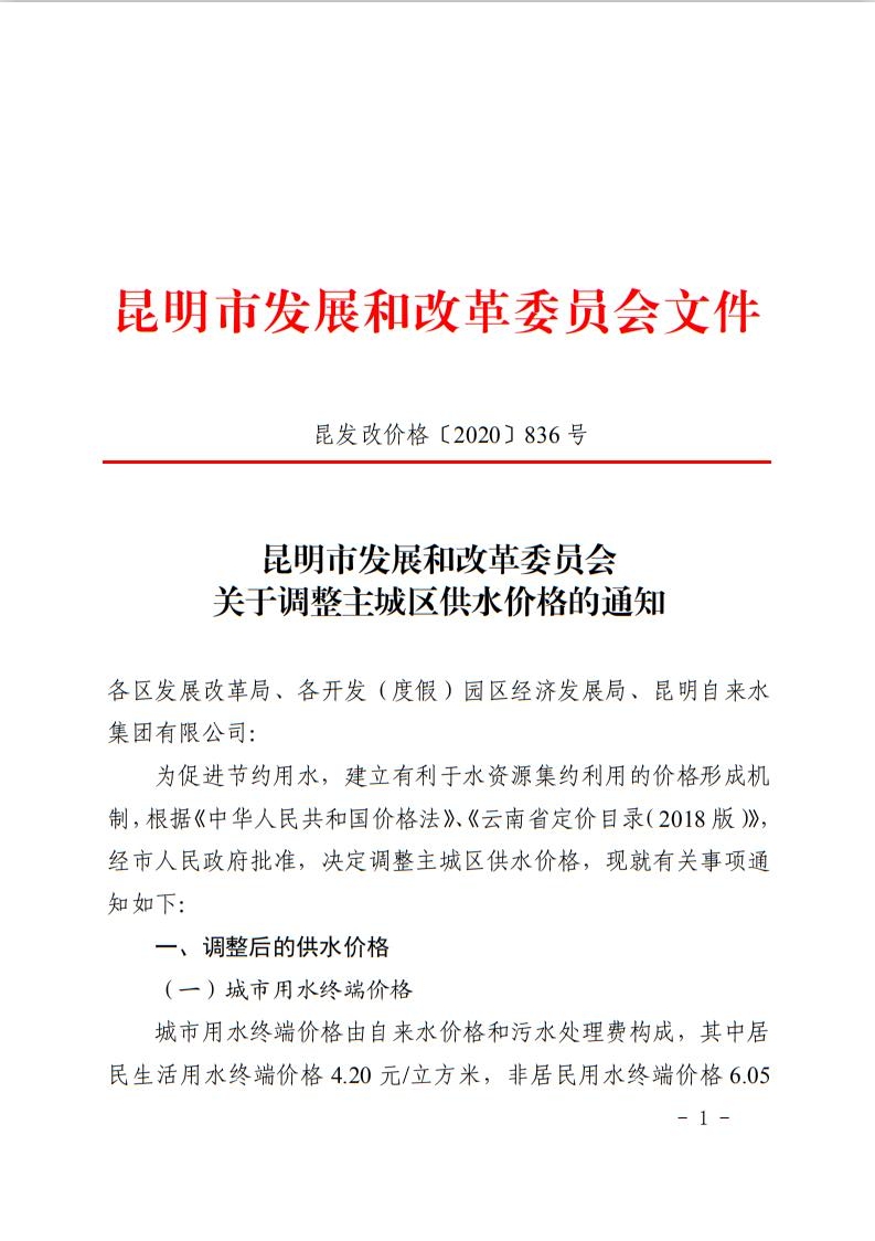 附件:昆明市发展和改革委员会关于调整昆明市主城区供水价格的通知