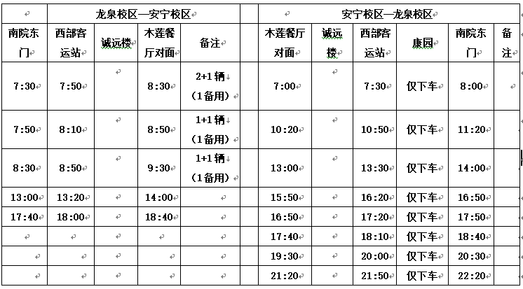 星期六、星期日教师交通车发车时刻表(2024年1月15日-1月26日)