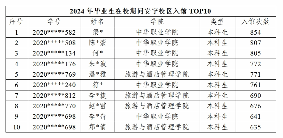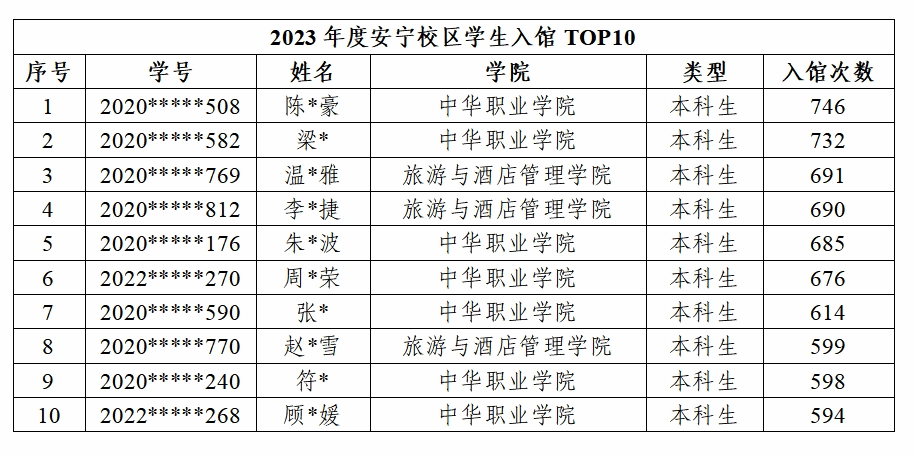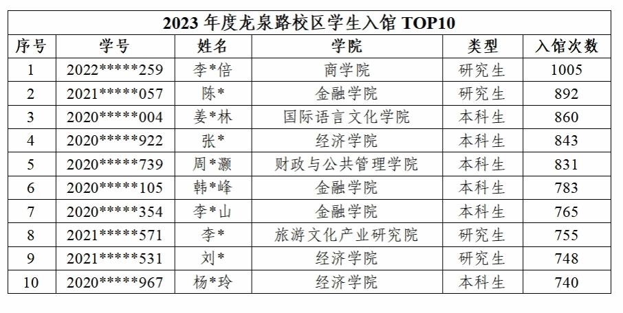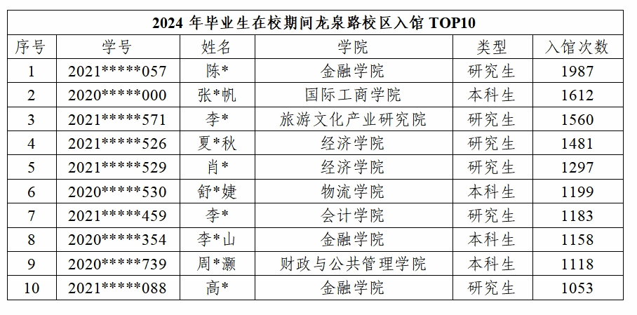 2.向2024年毕业生在校期间入馆人次TOP10、2023年度学生入馆人次TOP10的两校区读者发送书签。图书馆将电话联系各位读者,请注意接听服务台电话,读者可携带校园一卡通,分别前往两校区图书馆服务台登记并领取。