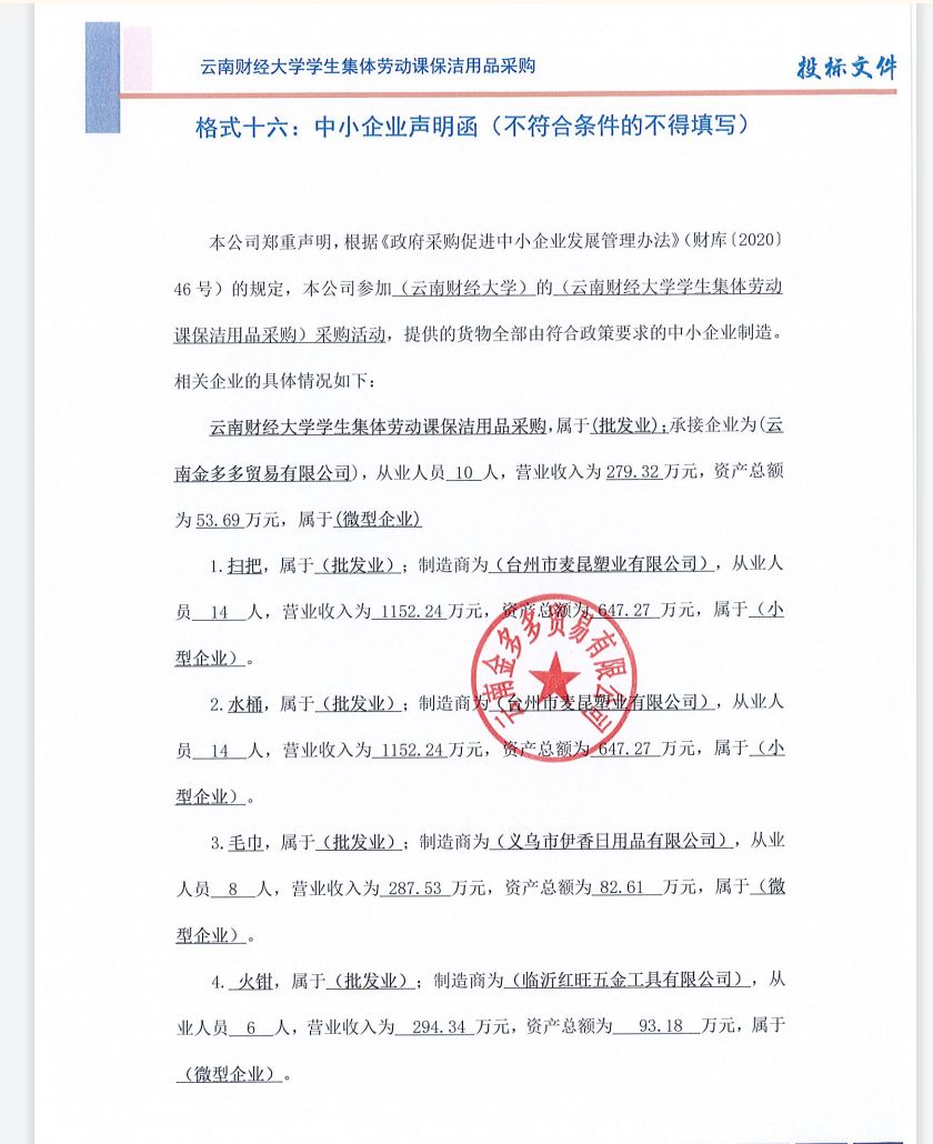 二、项目名称:十大买球官方网站学生集体劳动课保洁用品采购