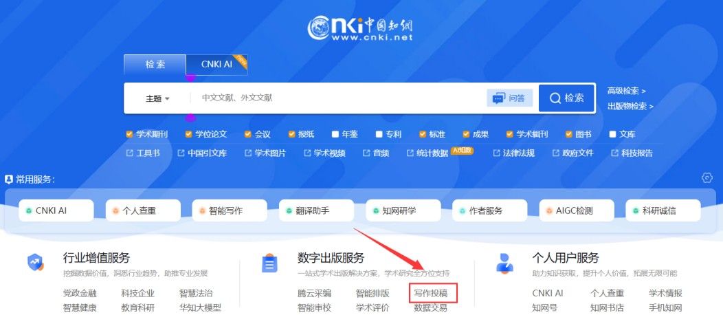 CNKI写作投稿服务平台依托知网海量学术资源、一手的学术期刊信息和期刊评价数据,为用户提供学术热点追踪、选题分析、智能选刊、快速投稿等服务,并集成内容智能审校、参考文献审校、翻译助手、自动排版、论文查重、AIGC检测等特色工具,全面解决用户在论文写作和发表过程中遇到的各类困扰。