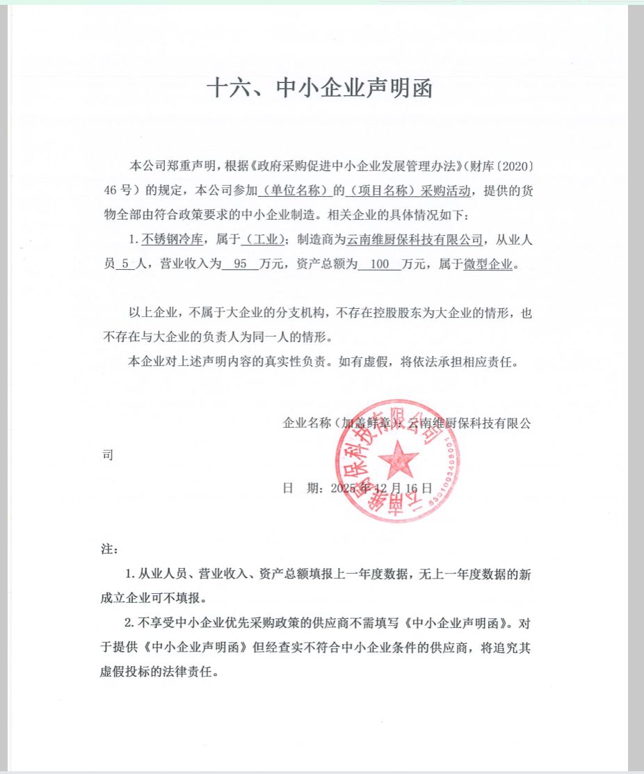 供应商名称:云南维厨保科技有限公司