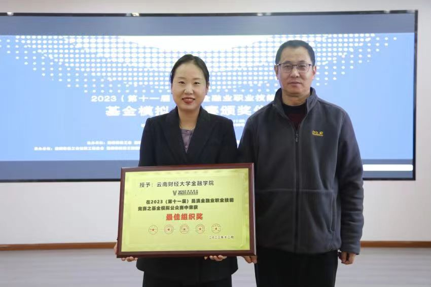 近日,2023昆滇基金赛颁奖仪式在昆明市新闻中心举行。在历时5个月的激烈竞赛中,买球金融学院从众多高校队伍中脱颖而出,荣获“最佳组织奖”,学院陈楠、马小晴、郑伊凌、郑凯等4名同学跻身高校参赛者总榜的前五名。金融学院团委书记任琳代表学院参加颁奖仪式。