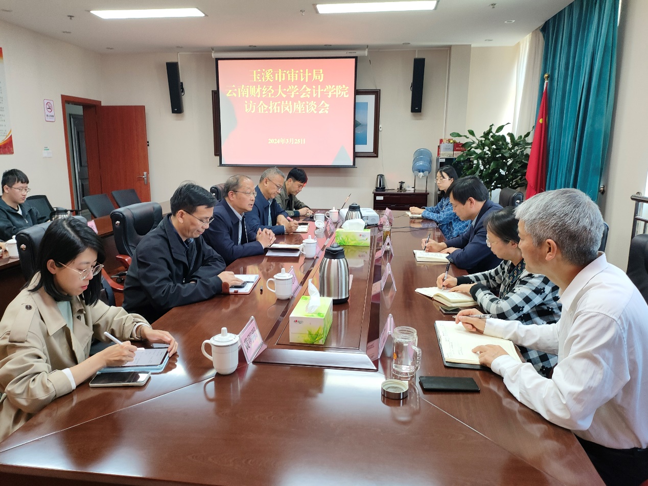 3月25日,会计学院(审计学院)到玉溪市审计局访企拓岗促就业。玉溪市审计局党组书记、局长杨文钦,党组成员、副局长许立贞,党组成员、副局长刘伟和校友代表李广川、褚媛,会计学院院长陈永飞、党委书记李丽忠、副院长纳超洪以及2024年度会计学院派往玉溪市审计局实习的5名研究生参加座谈。双方围绕人才培养、校政合作、党建工作展开深入交流。