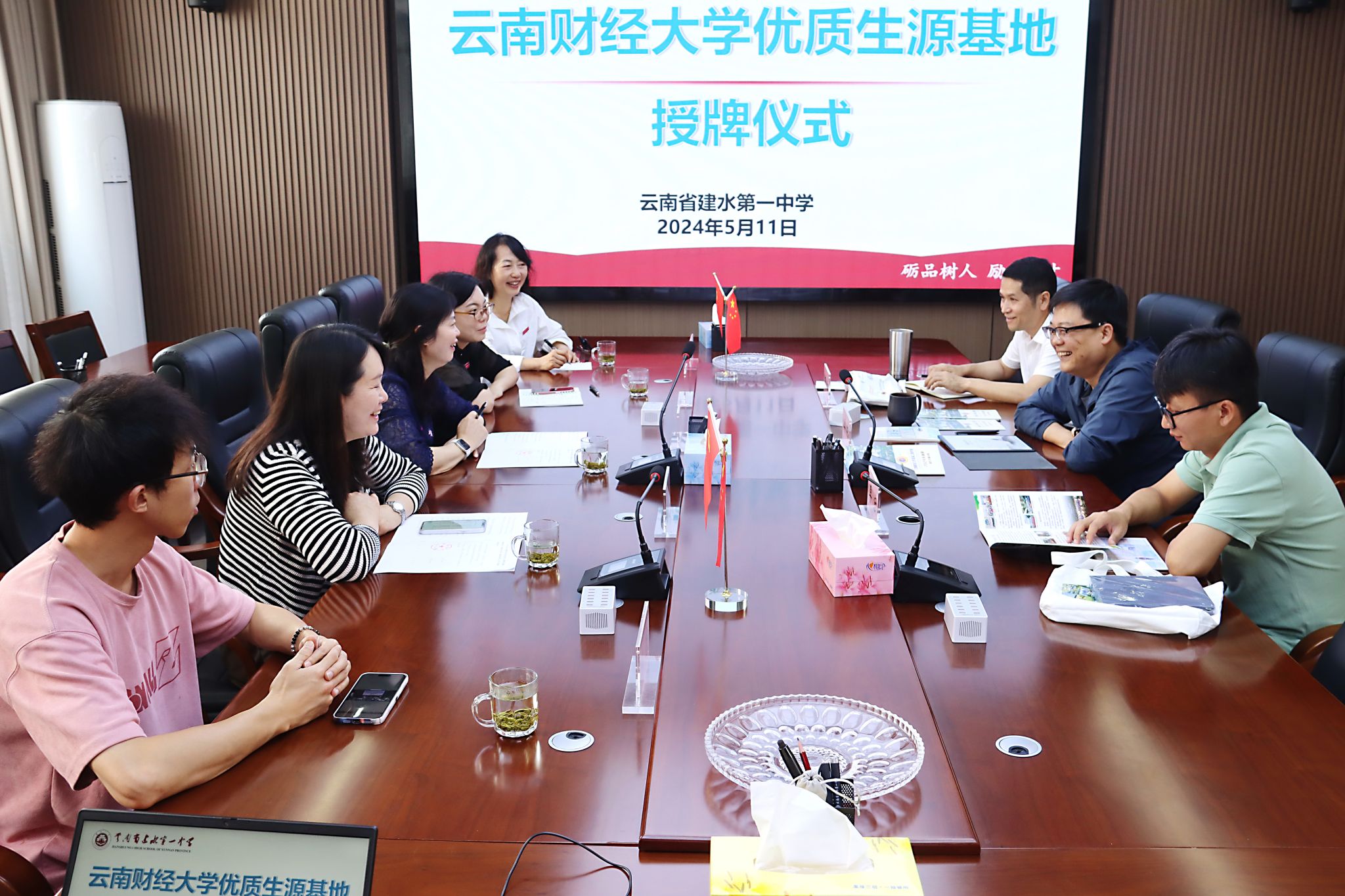 5月11日,“十大买球官方网站优质生源基地”授牌仪式在云南省建水第一中学(以下简称建水一中)举行,十大买球官方网站国际工商学院院长张洪烈、副院长张俊婕,建水一中校长李彬、副校长杨海参加活动并开展交流座谈。